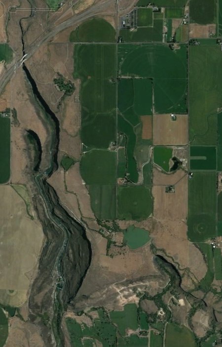 To figure out how they formed, Lamb and Mackey conducted field surveys and collected rock samples from Woody's Cove, Stubby Canyon, and a third canyon in Malad Gorge, known as Pointed Canyon. As its name indicates, Pointed Canyon ends not in an amphitheater but in a point, as it progressively narrows in the upstream direction toward the plateau at an average 7 percent grade. Through Pointed Canyon flows the Wood River, a tributary of the larger Snake River, which in turn empties into the Columbia River on its way to the Pacific Ocean.